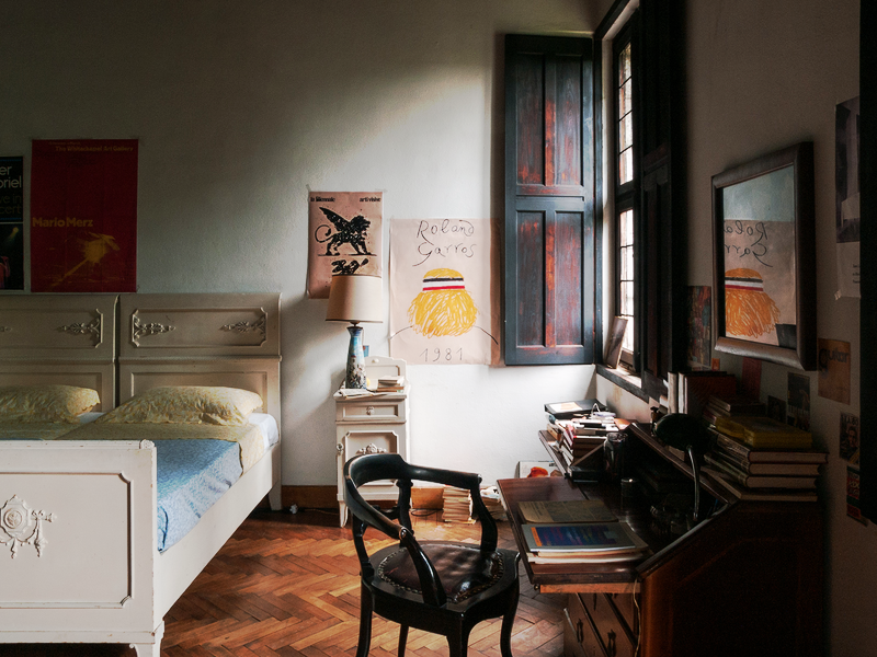 La camera da letto del protagonista è rivestita da parquet tradizionalmente posato a spina di pesce, piena di libri ed impreziosita da uno scrittoio antico, in contrasto con i poster appesi alle pareti (di cui se ne riconosce uno disegnato dall tennista Bjorn Borg, raffigurante l’Open di Francia del 1981).