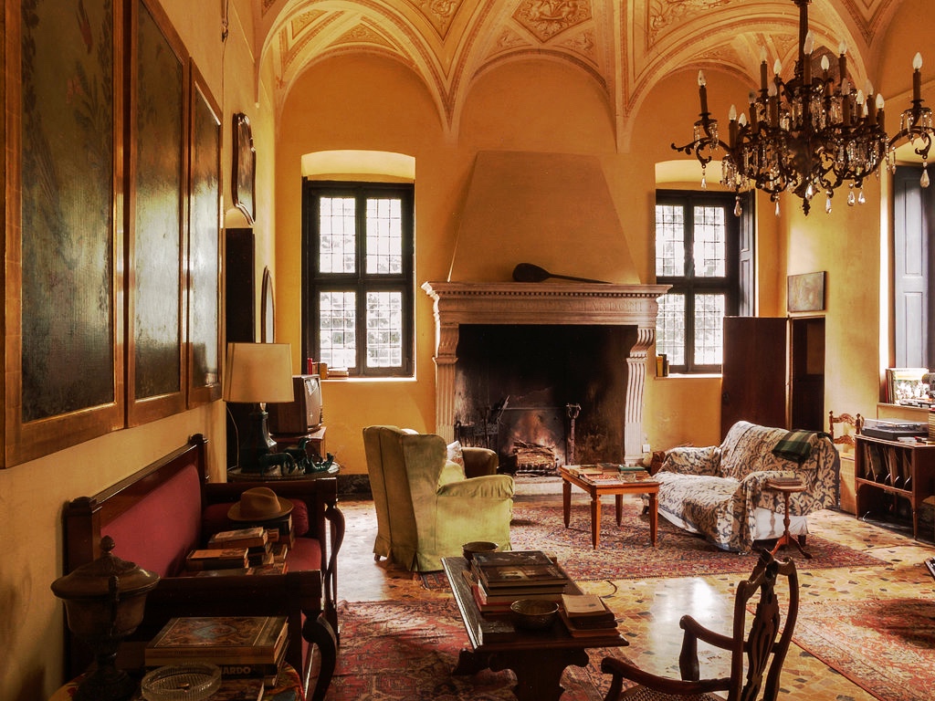 Dimora eclettica, piena di ricchezza storica, dall’aspetto gravido di sapere che evoca il Rinascimento. Villa Albergoni è dominata da toni caldi, rivestita da legni scuri, tappeti vintage ed una miriade di libri caoticamente disposti. Tutti gli ambienti mantengono un sapore rustico e country, ma con l’aggiunta di un’intrinseca nota di classicità.