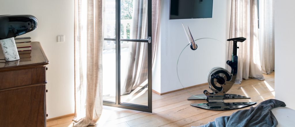 La Casa sul Fiume, progettata da deamicisarchitetti, prevede l’utilizzo di pochi materiali pregiati e la valorizzazione di alcuni elementi (i muri, ma anche il plafone) con una tinta oro davvero spettacolare e il meraviglioso lampadario di Catellani e Smith, Macchina della luce amplia lo sguardo impreziosendo l’ambiente anche nelle ore serali.