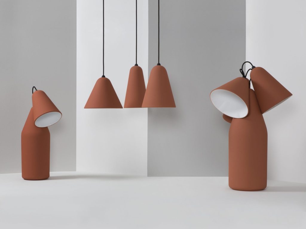 La puoi appoggiare alla madia del soggiorno o puoi appenderla sopra il tavolo della cucina. Si tratta di Terracotta Lamp, disegnata da Tomas Kral, prodotta in Spagna nella regione di Toledo.
