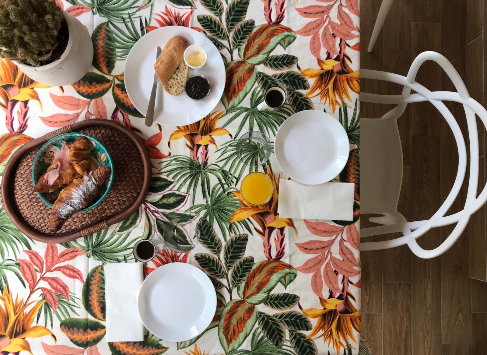 Per quanto riguarda la tovaglia trovo fresca e perfetta questa in lino slavato con motivo a righe di Zara Home. Per un’esplosione di colori invece ti suggerisco la tovaglia Sommarliv di Ikea con i fenicotteri rosa oppure la tovaglia in tessuto di cotone biologico con motivi stampati a tema esotico di H&M Home che vedi in copertina, apparecchiata dalla stylist Laura Panaccione.